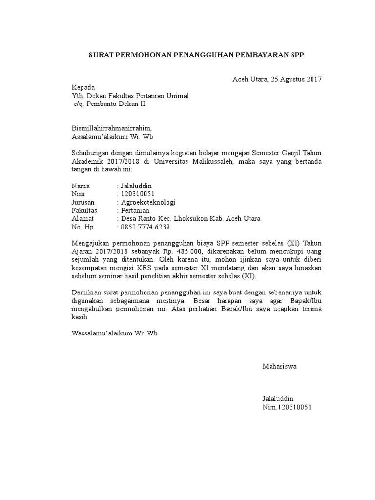 contoh surat pernyataan jenis fungsi dan strukturnya lengkap inspiring id. Admin dari blog bagikan contoh 2019 juga mengumpulkan gambar gambar lainnya terkait contoh surat permohonan penundaan pembayaran spp kuliah dibawah ini. contoh surat permohonan keringanan biaya sewa gedung / aula home » contoh surat permohonan keringanan biaya sewa gedung / aula by admin on june 12, 2020 3553 views contoh surat permohonan dispensasi uang kuliah. contoh surat permohonan penangguhan pembayaran _____,.